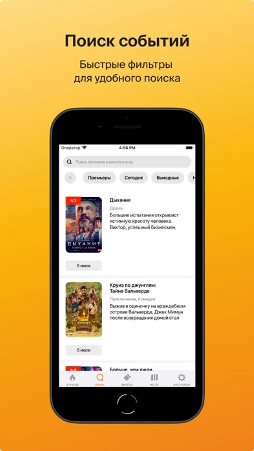 • Будь в курсе топовых фильмов с помощью push-уведомлений