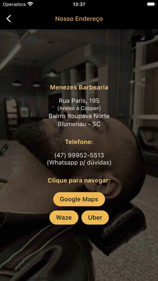 - Acessar nosso endereço e usar os botões de navegação para Maps, Waze ou chamar o Uber para vir até nós;