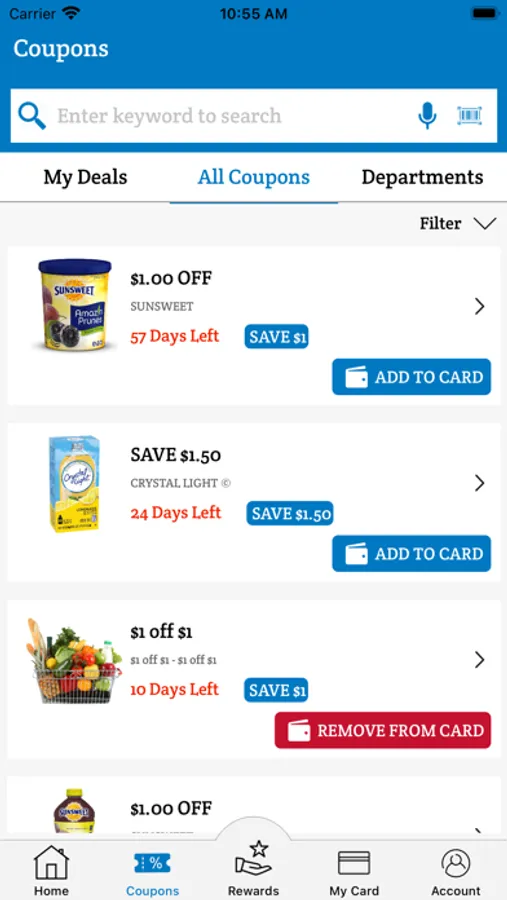 BD Food Pride app is the best way our loyal customers can receive savings every time they shop! Simply browse the coupons available, “Add to Card” the one’s you want, and scan your phone at checkout.