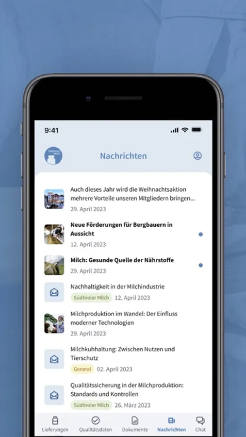 Die Milch App für Südtiroler Bergbauern, Milchbauern und all jene, die qualitativ hochwertige Kuh- und Ziegenmilch in Südtirol produzieren. Mit der App können Mitglieder der Südtiroler Milchhöfe schnell und einfach auf die täglichen Lieferungen, Qualitätsdaten, News, Dokumente und vieles mehr jederzeit und schnell zugreifen.
