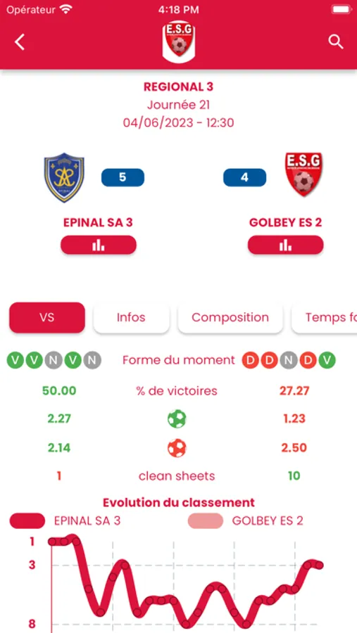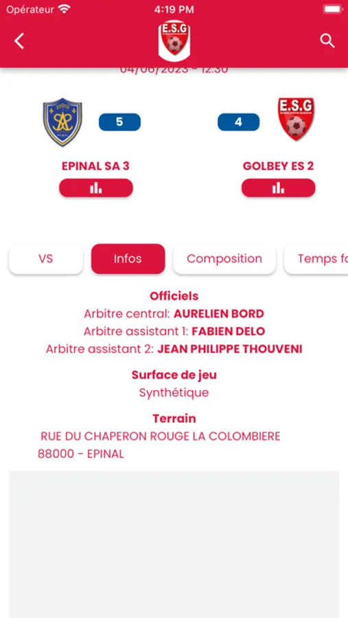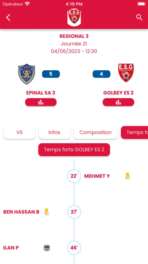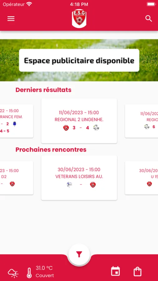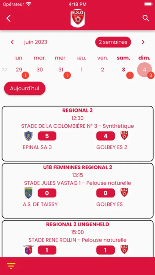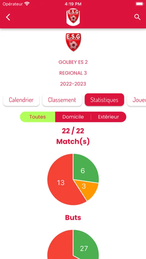 Avec l'App de l'ES Golbey, tu accèdes aux résultats, calendriers et classement de l'ensemble des équipes du club.