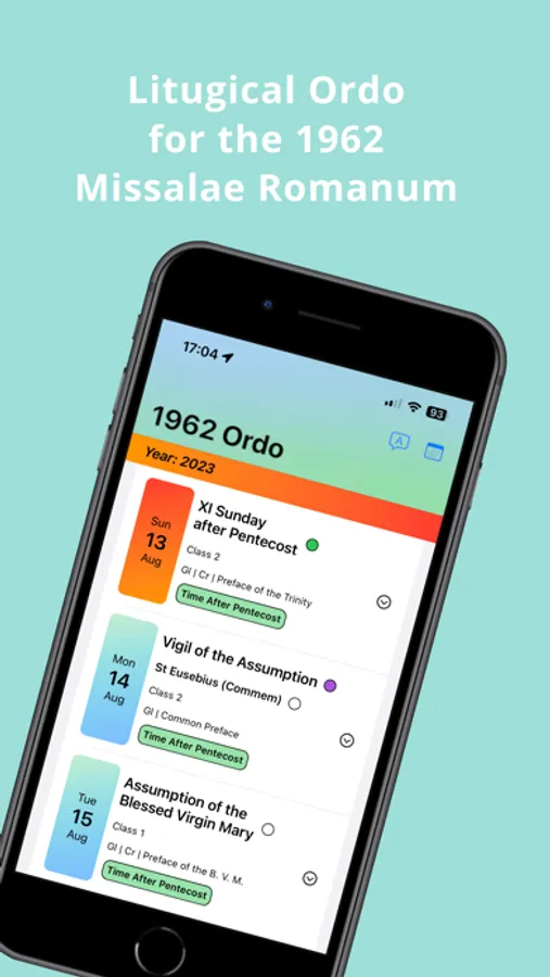 A Traditional Catholic Liturgical Calendar for the Holy Sacrifice of the Mass according to the 1962 Missale Romanum issued by Pope St. John XXIII. This App is designed for the easy accessibility of the faithful and an increase of awareness regarding the Traditional Mass. Features include:
