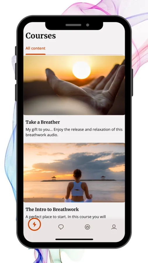 Whether you are new to breathwork and want to try it for the first time or you are looking to deepen your practice and find a community, there's a Wild Breath offering for you. Take a journey with the Wild Breath app, with our introduction courses, deep-dive programs and/or the live group community membership.
