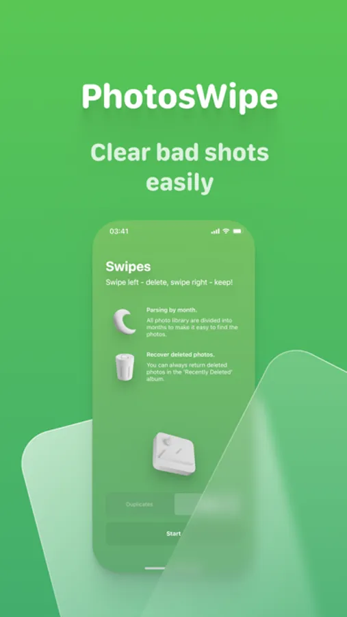 In a game format, sort through old photos and leave the most bright memories! Swipe to the right to keep the best photos. To remove duplicates or bad shots - swipe to the left. You'll be surprised how many unwanted photos used to clutter up your gallery.