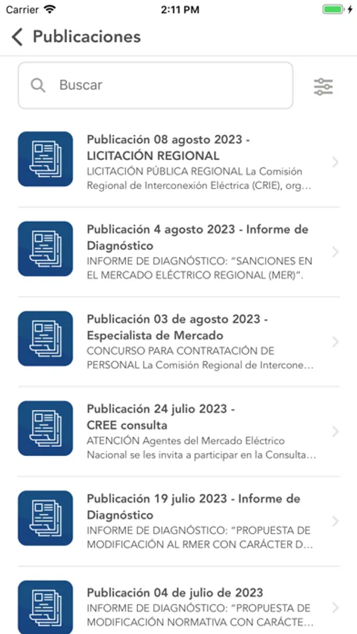 1. Listado de publicaciones: Accede a todas las noticias y comunicados de la CRIE de forma fácil y rápida. Mantente informado sobre los últimos acontecimientos y novedades del MER.