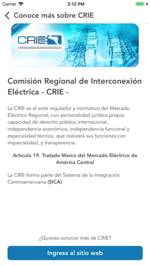 La aplicación CRIE es la herramienta definitiva para estar al tanto de todas las novedades y regulaciones del Mercado Eléctrico Regional (MER). Como ente regulador y normativo, la CRIE tiene la responsabilidad de garantizar la eficiencia y transparencia en el mercado, y esta aplicación informativa pone toda esa información al alcance de tu mano.