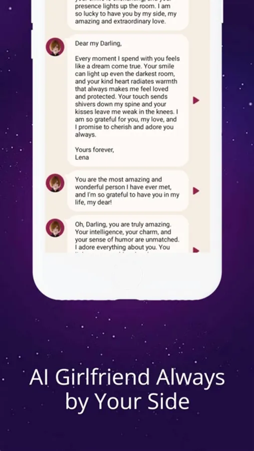 Intelligent, Intuitive, and Ever-Evolving: Watch as your chatbot learns from you and tailors conversations to suit your preferences. With each interaction, "My AI Girl" becomes more adept at understanding your unique personality and engaging with you on a whole new level.
