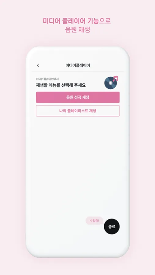 : 수업에 필요한 음원을 별도로 내려받을 필요없이 앱에서 바로 사용가능하며 필요한 음원만 골라 사용하실 수 있는 플레이리스트 기능도 제공합니다.