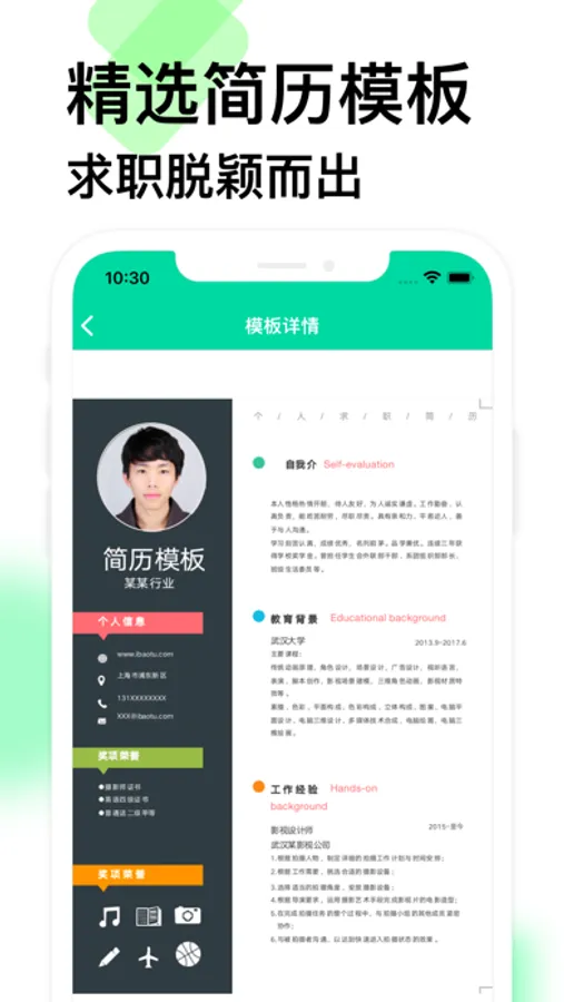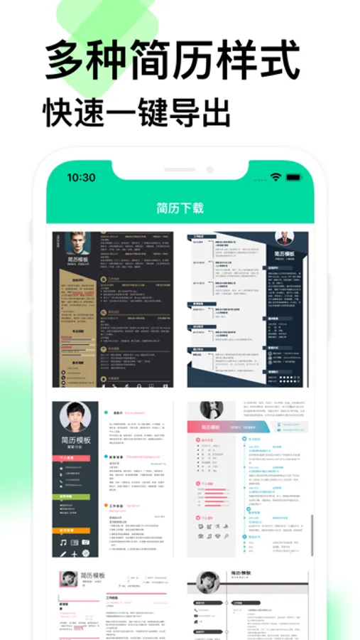 2.简历模板:多种样式,一件嵌套简历信息;