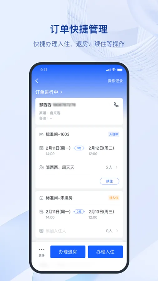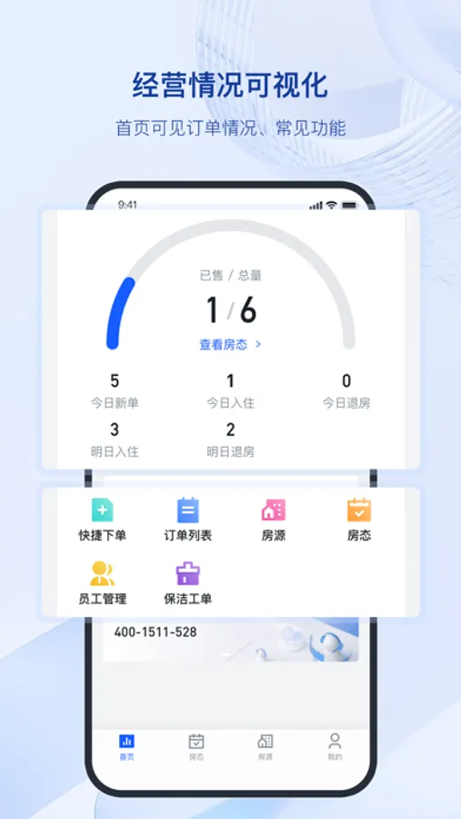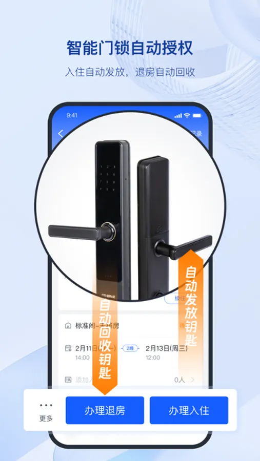 “悦宿”是一款专门针对民宿、网约房等住宿行业的服务类工具,提供PMS系统服务,更高效地帮客户解决问题。通过智能门锁实现入住自动发放授权,退房自动回收授权,使旅客无需实体钥匙一键开门。通过退房自动转脏房、脏房自动安排保洁实现旅客退房即可自动安排保洁,无需手动派单。