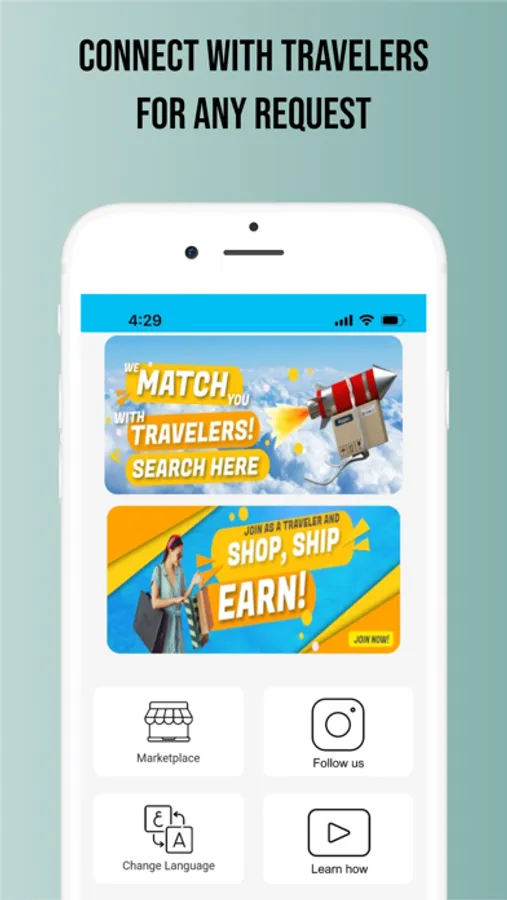 3. Traveler shops, and deliver locally, buyer confirm. Shpper releases payment.