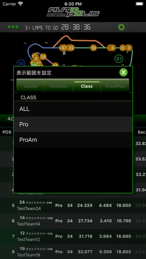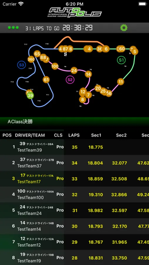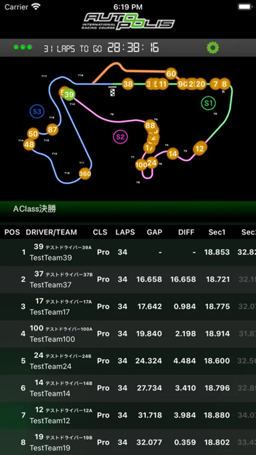 It is a live timing app that can be used at the Autopolis International Racing Course.