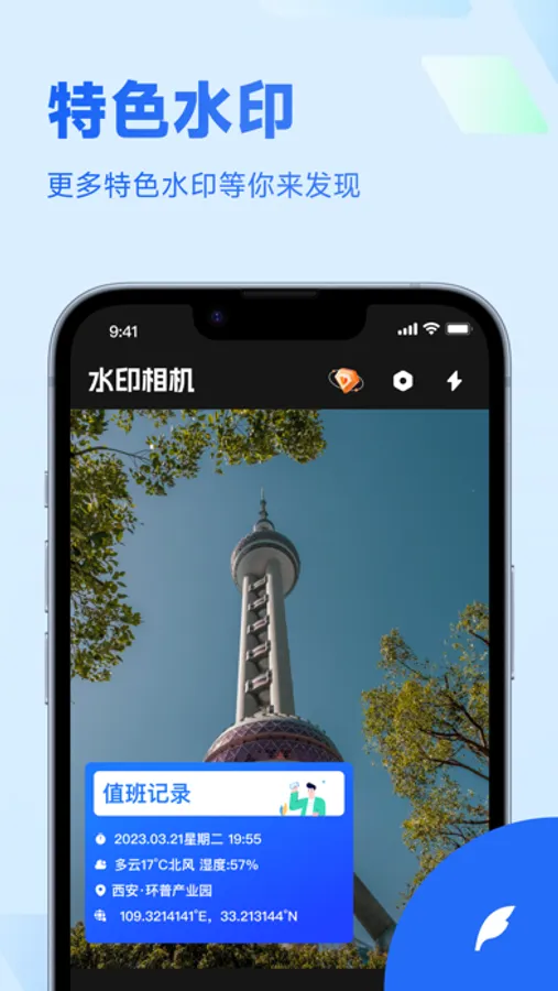 《水印相机-工作地点打卡时间证明软件》是一款功能丰富的拍照记录水印软件。用户可以根据不同场景拍照,添加时间天气地点经纬度等水印功能。为工作、出行、值班等有需求的用户带来更好的体验!