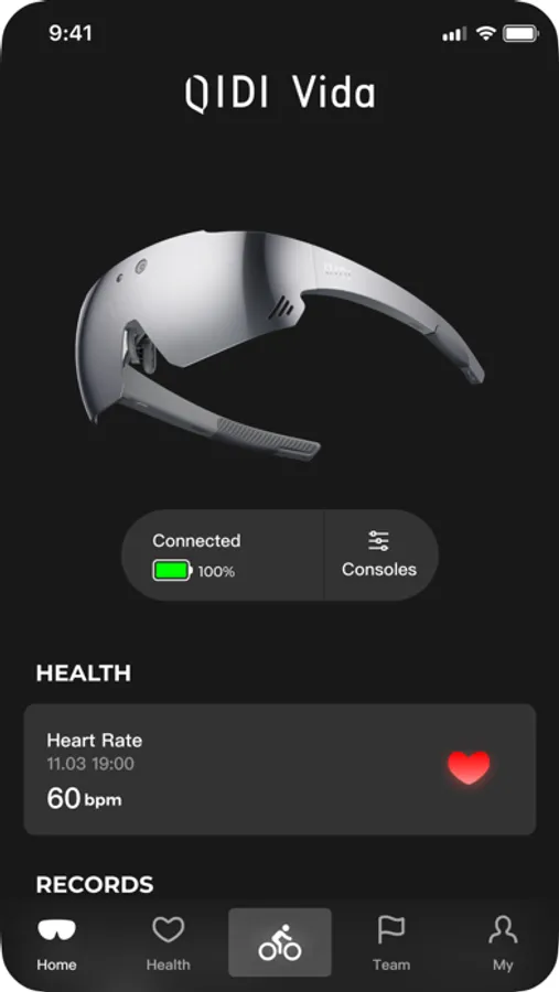 Connect your phone to QIDI glasses through the QIDI App to manage the volume, brightness, and photo albums of the glasses, and synchronize photo albums, health data, exercise records, etc.