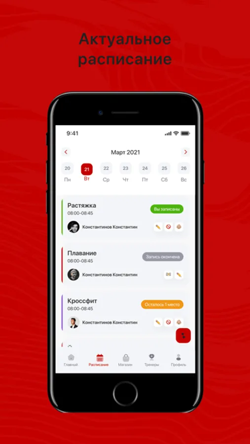 Посмотреть актуальное расписание тренировок;