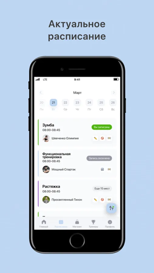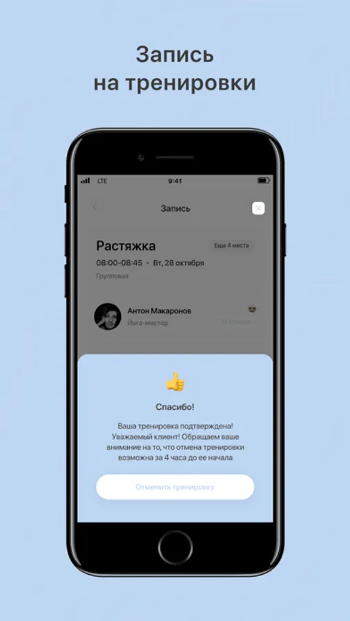 Получать PUSH-уведомления о предстоящей тренировке за 3 часа;