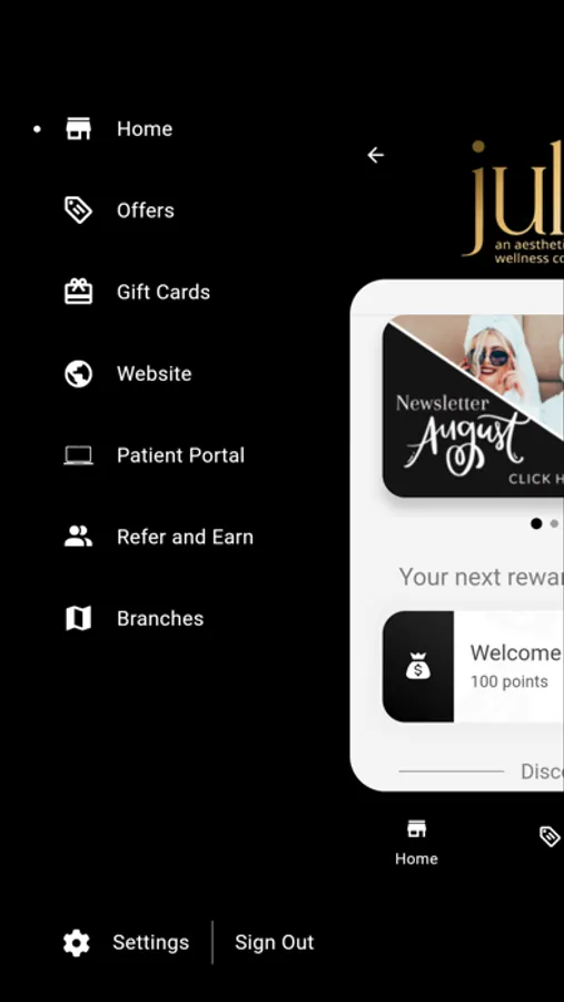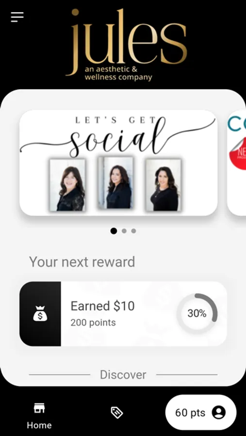 Jules Aesthetics and Wellness is a med spa. Offering services like: Botox, Filler, Laser treatments and Facials. The app will be used to help patients earn points for discounts on future services. A Loyalty app.
