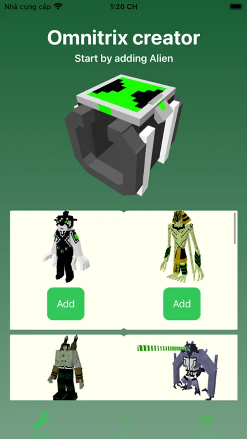 Add the alien you want to include and then just press the install button. In the game, tap on any block while wearing the Omnitrix to choose the desired alien.
