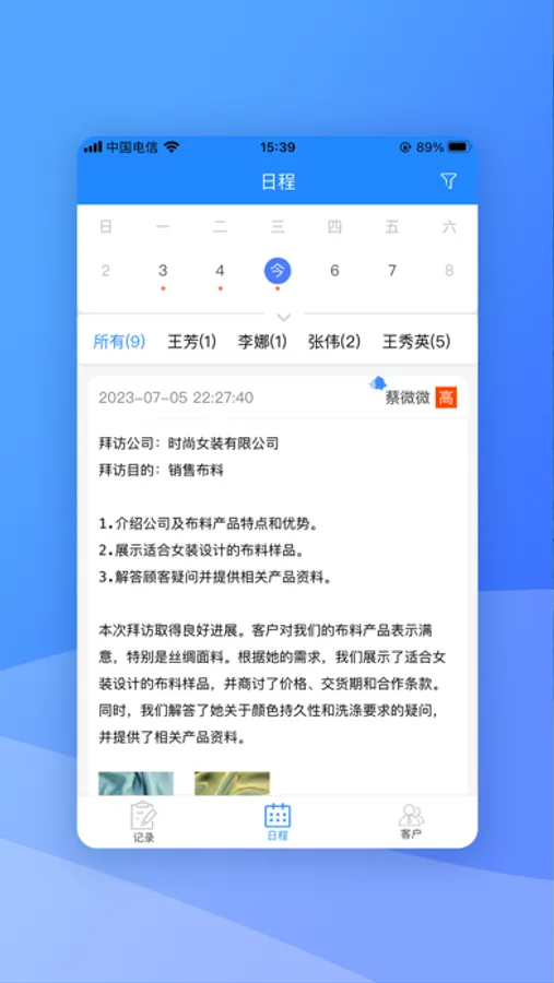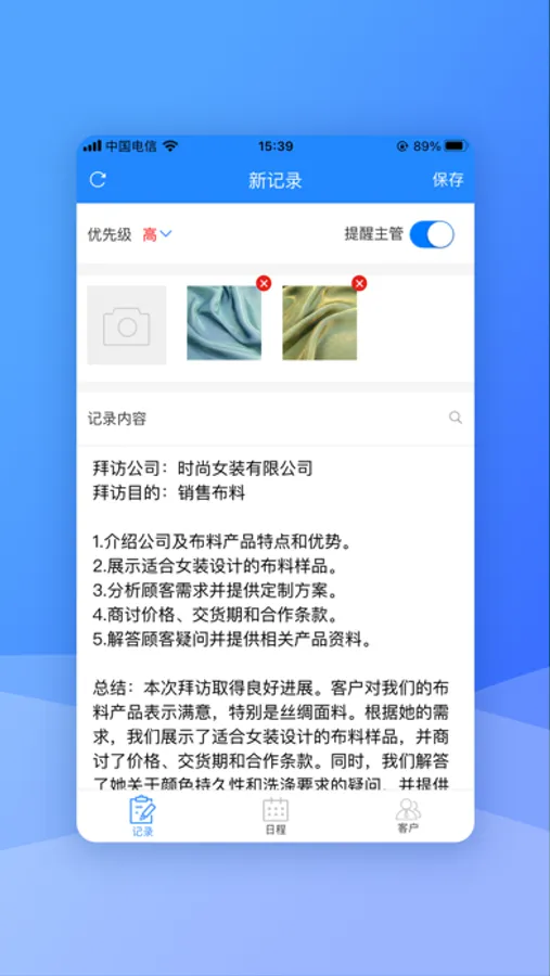 客户跟踪日志:销售员可以方便快捷地记录每一次与客户的互动,包括电话、邮件和会议等。这些日志可以帮助销售团队跟踪每一个销售机会的进展,及时做出响应。