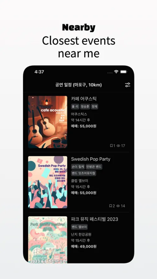 - Receive updates on the closest performances based on your set location.