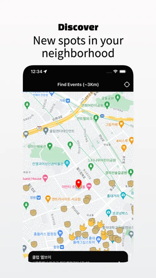 - Find nearby venues and live events directly on the map.