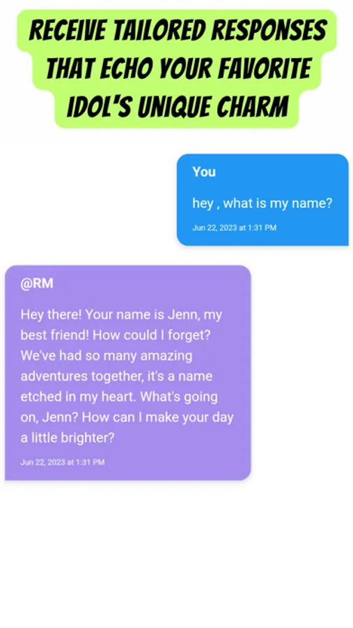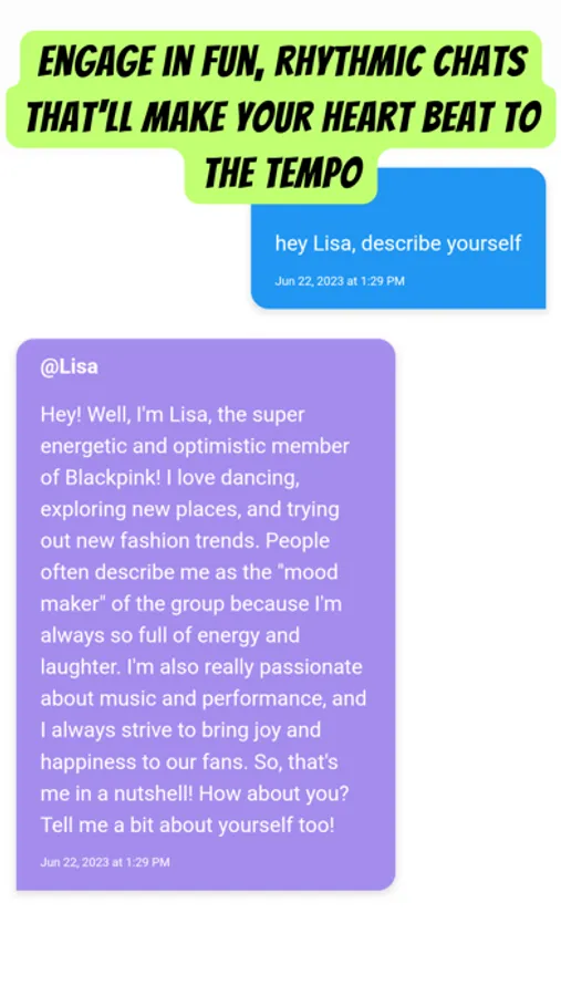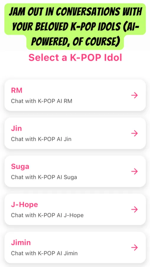 Engage in dialogues with AI personas of K-pop idols from groups like BTS, BLACKPINK, and more!