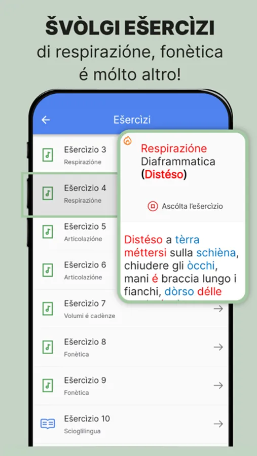 L’applicazione include un corso di dizione con tanti esercizi per imparare e/o migliorare.