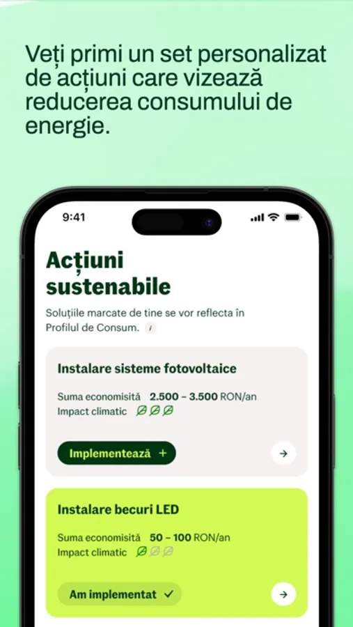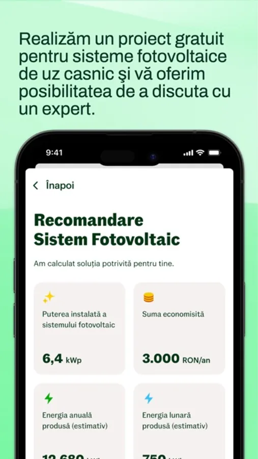 Acest plan va evidenția potențialul agregat de eficiență energetică, cuantificat în moneda locală, și va descrie fiecare măsură propusă, care poate include înlocuirea electrocasnicelor cu echipamente eficiente din punct de vedere energetic, izolarea termică a gospodăriei, migrarea la iluminatul cu LED, implementarea de prize inteligente și instalarea de sisteme fotovoltaice care, în final, vă oferă toate informațiile de care aveți nevoie pentru a lua cele mai bune decizii atât în ceea ce privește consumul dumneavoastră, cât și tipul și natura energiei utilizate. În centrul produsului nostru se află designerul inteligent de sisteme fotovoltaice, care utilizează informații precum suprafața utilă a gospodăriei, consumul anual de energie electrică și orașul de reședință pentru a determina automat (la un singur clic distanță de soluția completă) o soluție de sistem fotovoltaic potrivită pentru utilizatorii noștri.