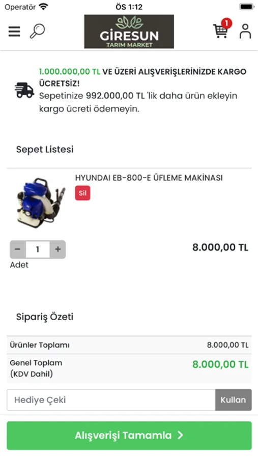 Giresun Tarım Market uygulamasıyla ürünleri inceleyebilir ve satın alabilirsiniz.