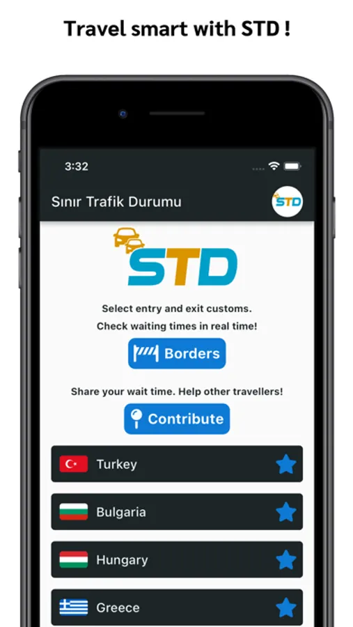 STD (Border Traffic Status) is a mobile application that provides instant information about the congestion and waiting times at the border crossings of the Balkan and Thracian countries.