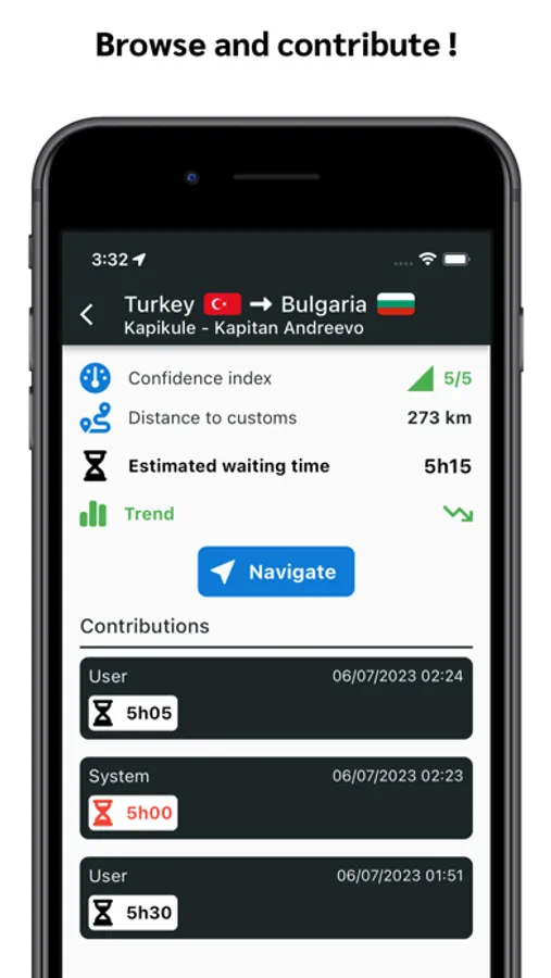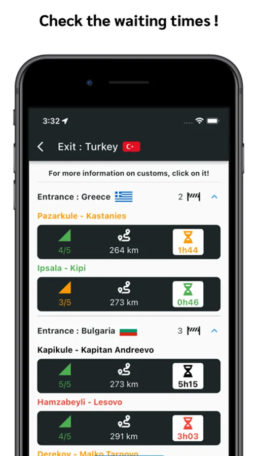 By querying the STD application, users can plan their travels according to the instant waiting times at different border crossings and choose the customs gates with the least waiting time for a smooth and fast crossing.