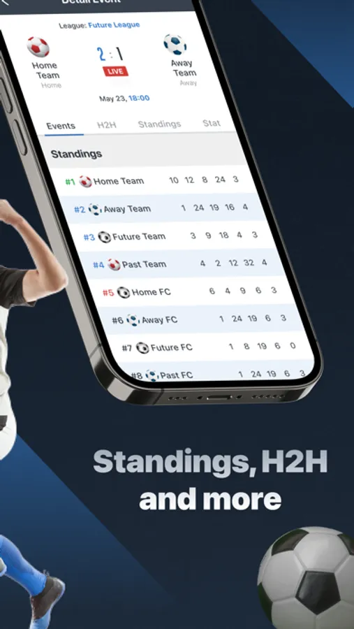 - Standings: Keep track of team rankings and standings across different leagues and tournaments. Stay updated on the current positions and progression of your favorite teams.