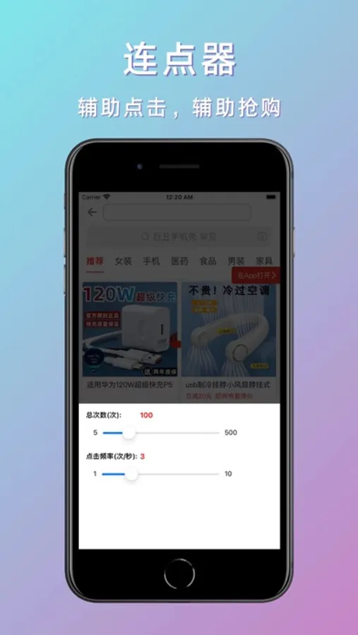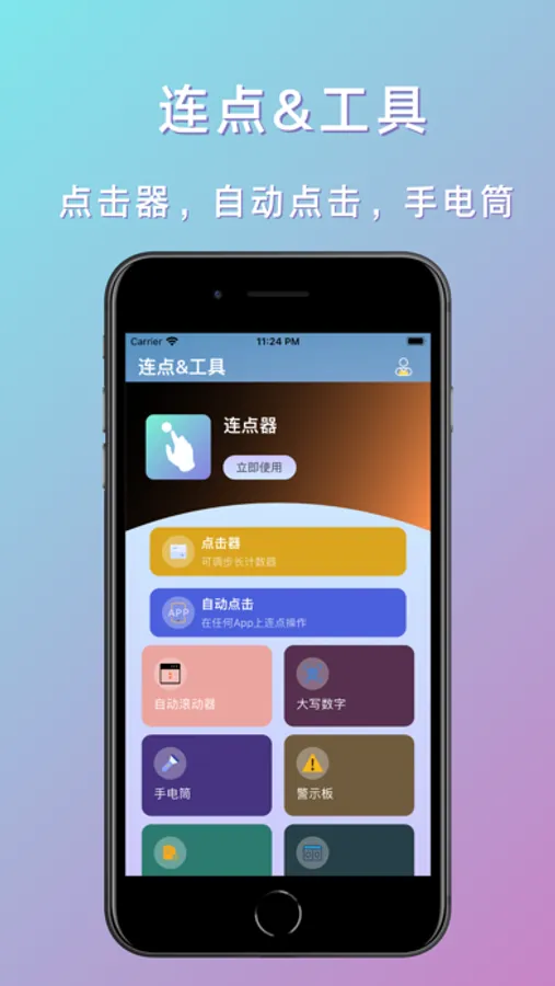 连点器,一款包含辅助自动点击、手电筒、记分器、自动滚动等实用功能的工具。