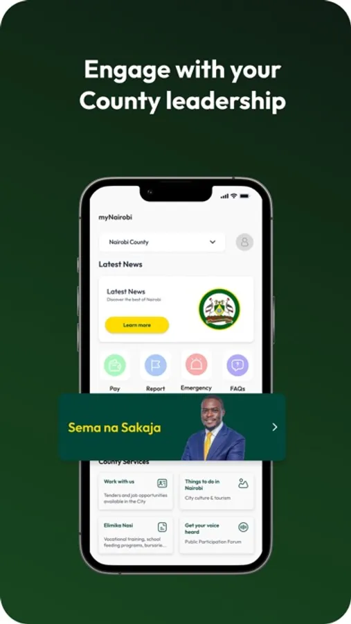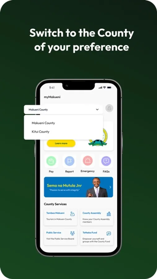 1. Standardized Experience: Through MyCounty app channel as a single point of entry, users will have access to their resident county features such as paying for county services including but not limited to parking, single business permits, land rates and market cess fees among others.
