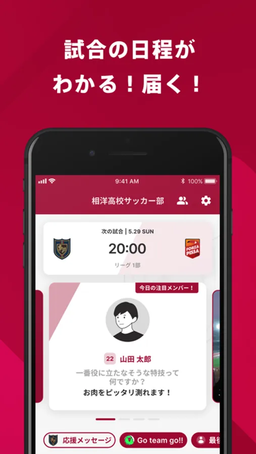 アプリを通じて、チームとの距離がぐっと近くなる。仲間が増える。チームをもっと好きになる!