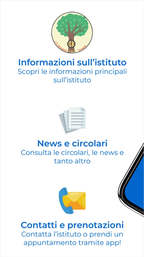 Scopri l'app dell'Istituto Comprensivo Giovanni XXIII di Terrasini. Potrai visualizzare tutte le informazioni e i contatti dell'istituto, consultare i contenuti, ricevere notifiche push in base al tuo ruolo e ai tuoi interessi, accedere allo sportello digitale e prenotare un appuntamento con la segreteria o la presidenza.
