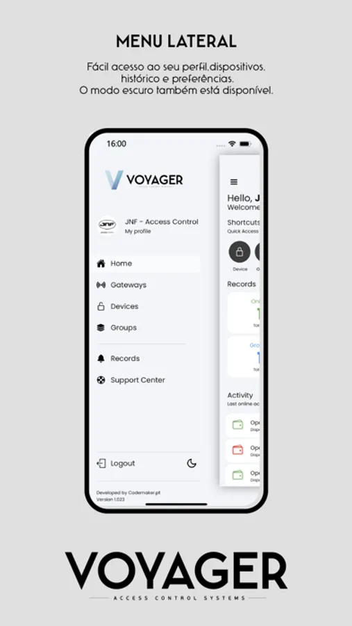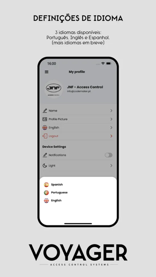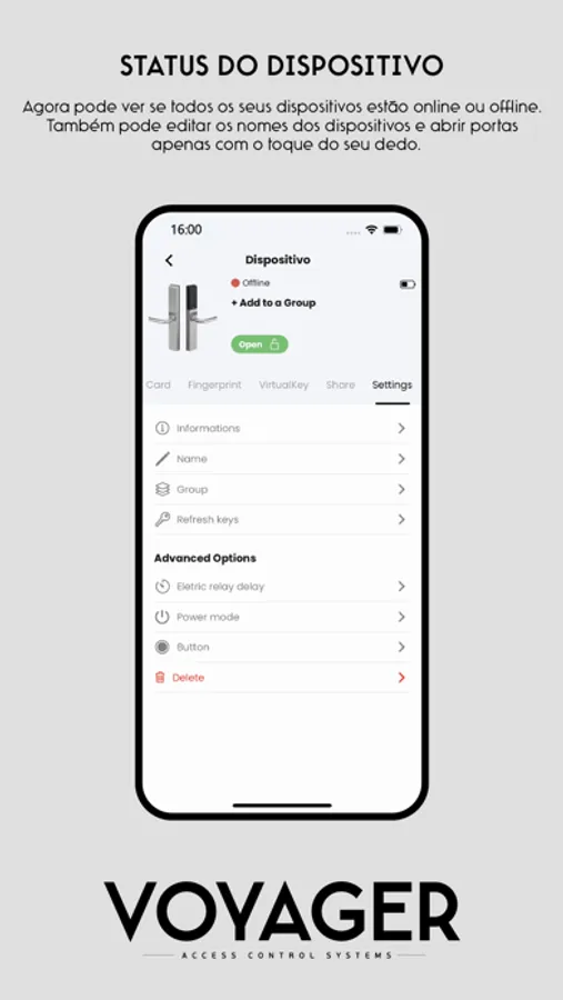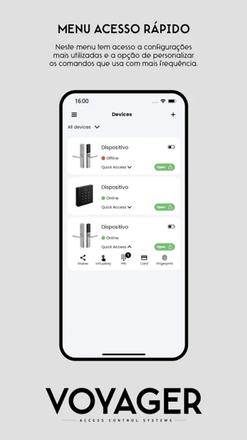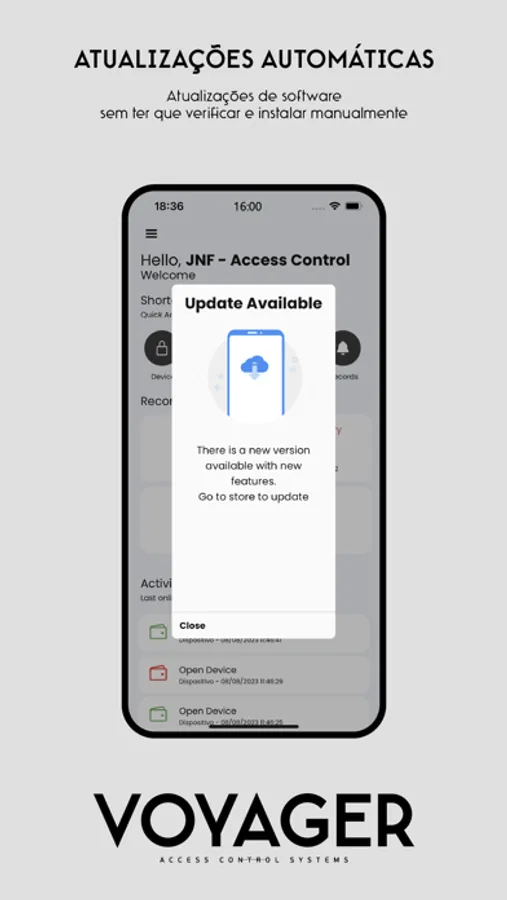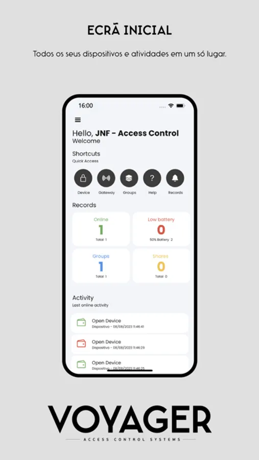A app JNF VOYAGER transforma o smartphone na sua chave de entrada. Seguro e fácil de instalar, o controlo de acessos VOYAGER fornece uma solução totalmente sem fios em rede com soluções diferentes para cada aplicação em arrendamentos, hotéis e até mesmo casas privadas. Todas as funções estão disponíveis na proximidade da fechadura, em qualquer lugar, mesmo quando o usuário não está perto da fechadura.