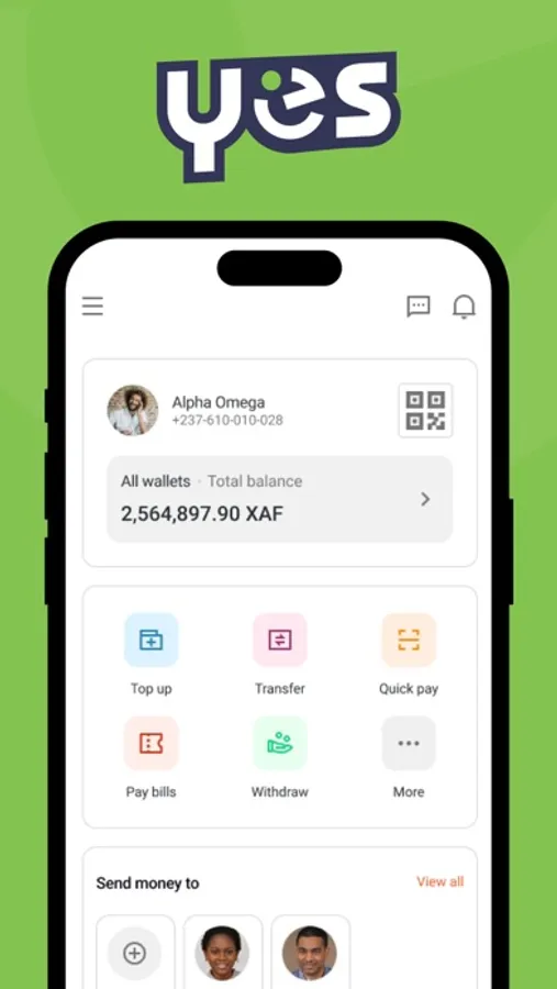 - Transfer funds between Yes wallets, cash out, and send to bank accounts, or mobile money providers.