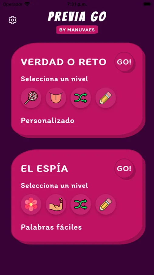 ¿Estás listo para desafiar los límites de la diversión? Previa Go es el juego que estabas esperando. Fortalece los lazos con amigos y familiares a través de la cooperación y la sinceridad. Te lo pasarás en grande con nuestros dos grandes juegos, el Verdad o Reto y El Espía.