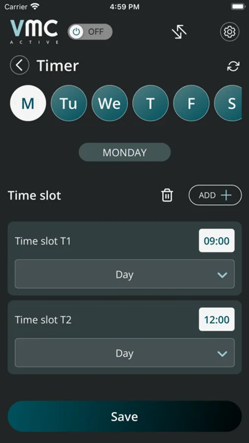 By using the weekly programming function, you can customize the operation of VMC units according to your needs. You can schedule the unit to turn on during periods of occupancy and turn off when not needed, thus optimizing energy savings and maximizing environmental comfort.