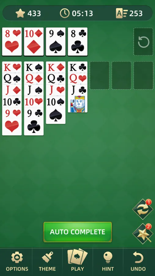 In this classic solitaire, there are tens of card faces and card backs, you can choose the one you mostly like.