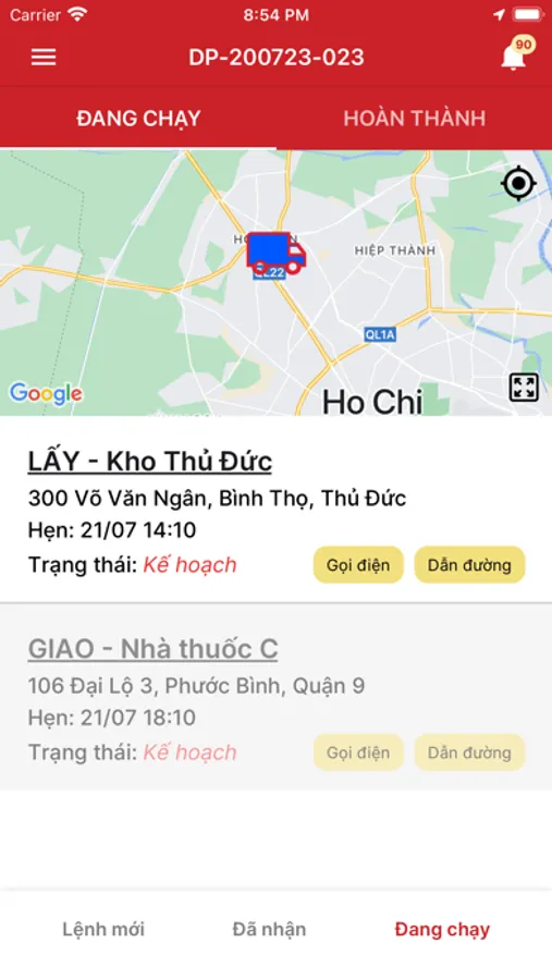 Đối với nhân viên giao hàng và tài xế: có thể nhận thông tin chuyến hàng cần giao, biết được lộ trình giao hàng kèm theo danh sách địa điểm lấy hàng, địa điểm giao hàng, từ chối chạy chuyến/nhận lệnh chạy chuyến, tính năng dẫn đường, gọi điện, thực hiện lấy hàng, giao hàng, thu tiền, và các công việc chụp hình, ghi nhận lý do ở từng bước tương ứng, xem báo cáo giao hàng.