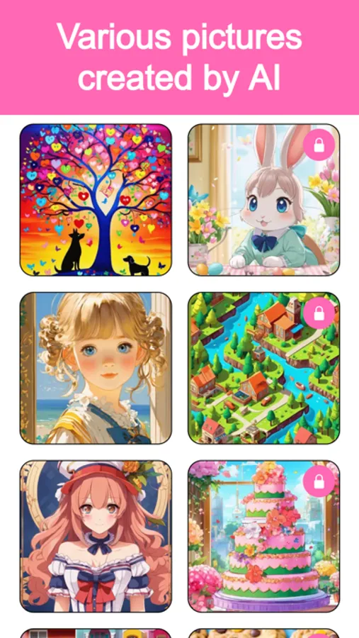 ■You can choose puzzles from various images created by AI. There are various categories, such as animals, landscapes, abstract paintings, etc.