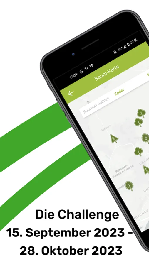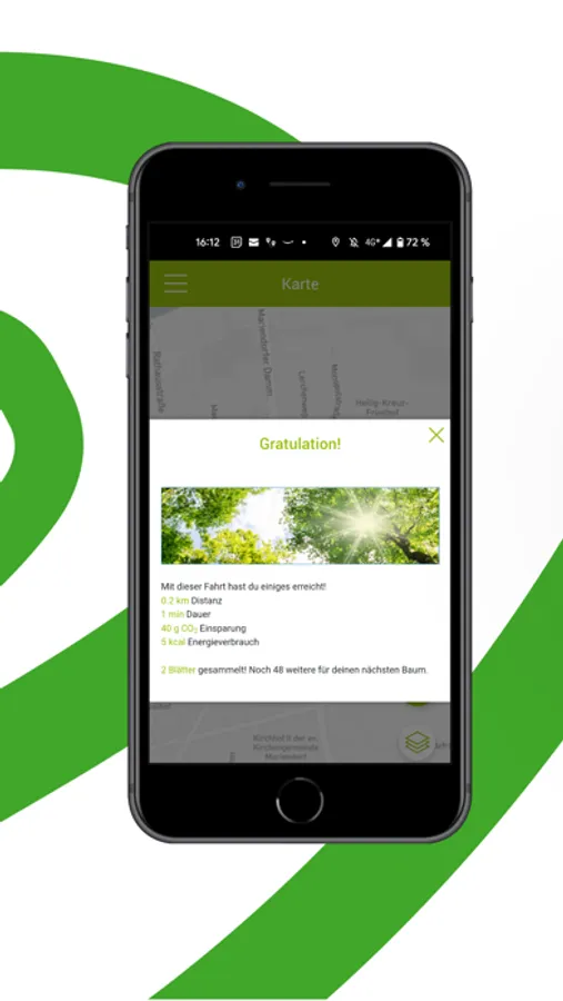 Erstelle einen individuellen Benutzernamen, um loszulegen. Für jeden geradelten Kilometer kannst Du Punkte in Form von virtuellen Blättern in der App sammeln und so virtuelle Bäume an Orten Deiner Wahl pflanzen.