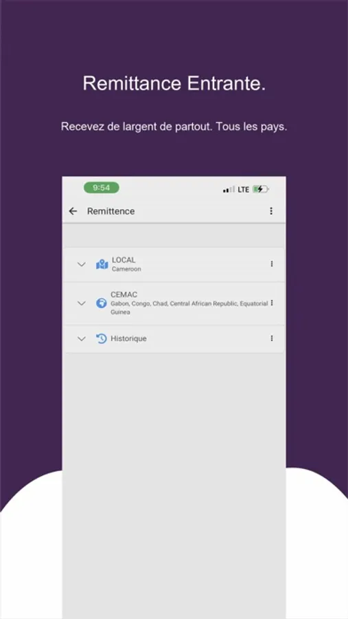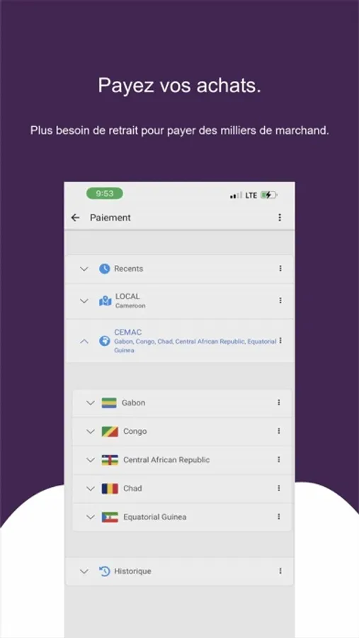 Transfert dans toute la zone CEMAC. 6 pays, 53+ banques- 10+ micro finances – 10+ opérateurs mobile, 33+ millions de wallets.