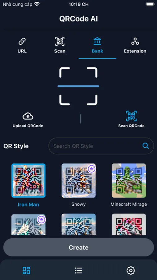 Many utility features are available: Scan, Image, Bank, Url, Phone, Wifi, Facebook, Tiktok, ...