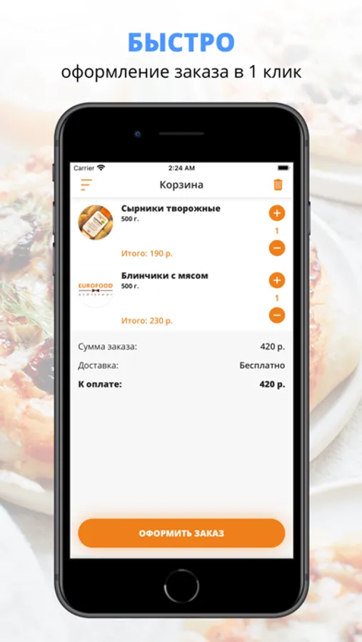 Скачивайте наше приложение, оформляйте заказ и наслаждайтесь любимой едой, где бы Вы ни были! Приятного аппетита!