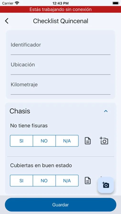 App móvil para registro de inspecciones, ingrese desvíos, observaciones e imagenes al chequeo de inspección.