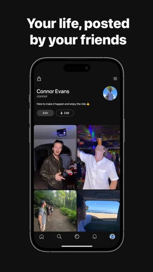 When opening Snapshots, you will only see content that is directly relevant to your social circle. The main feed is chronological, and will never show you content from people you aren’t friends with. By default, all profiles are private and only accepted friends can have access to your memories.