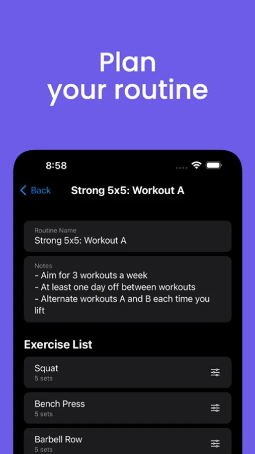 • Log an unlimited number of workouts and create an unlimited number of routines